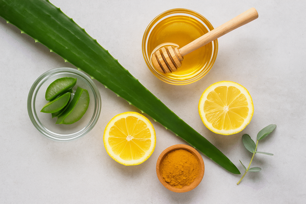 Aloe vera has anti-inflammatory and antibacterial properties that calm redness and help heal pimples faster.